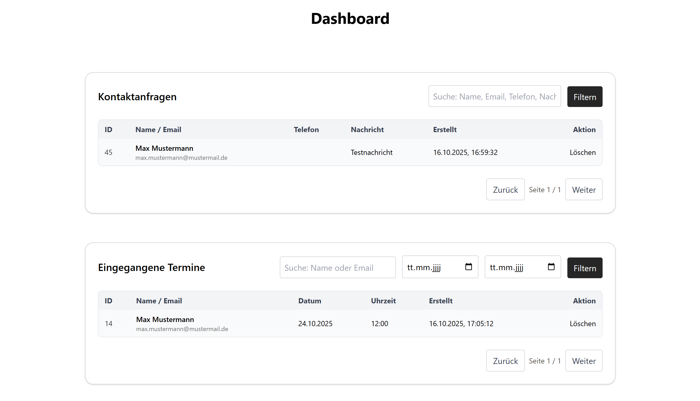 Entwicklung einer vollständigen Webanwendung mit öffentlichem Webauftritt und internem Verwaltungsbereich. Das Projekt entstand im Rahmen meines Abschlusses als Fachinformatiker für Anwendungsentwicklung.